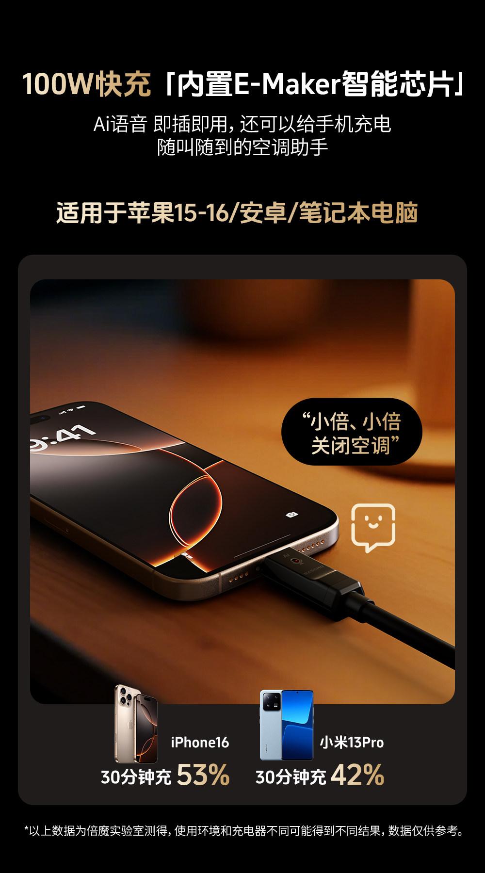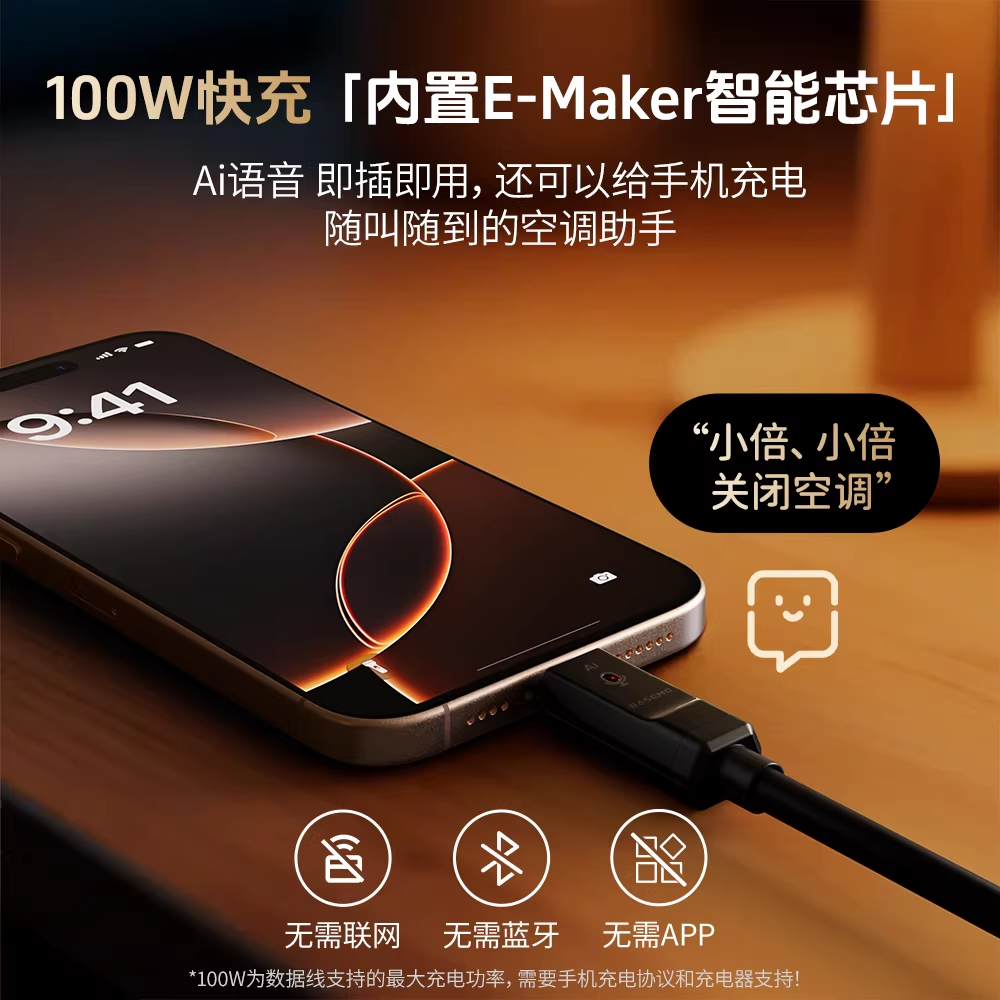 Supports high-power fast charging while functioning as an AI voice control cable—power your phone at the same time.