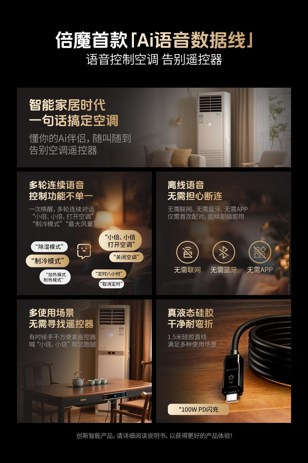 O2W Selection Beimo AI Air Conditioner Voice Control Fast-Charging Data Cable Type-C