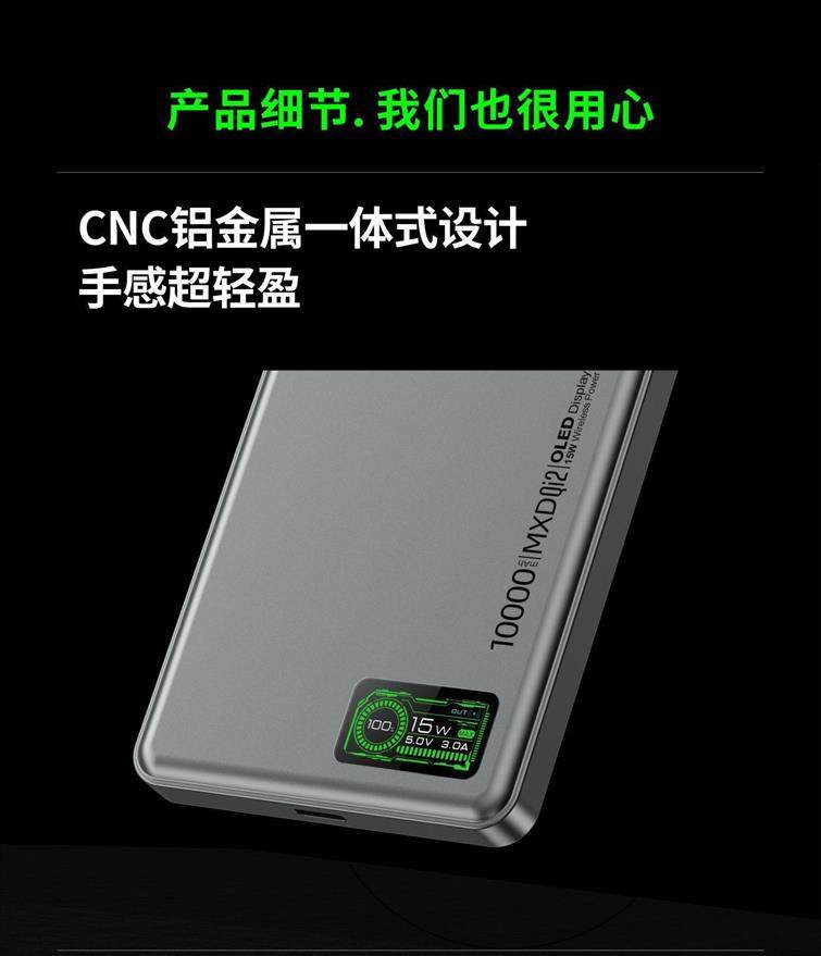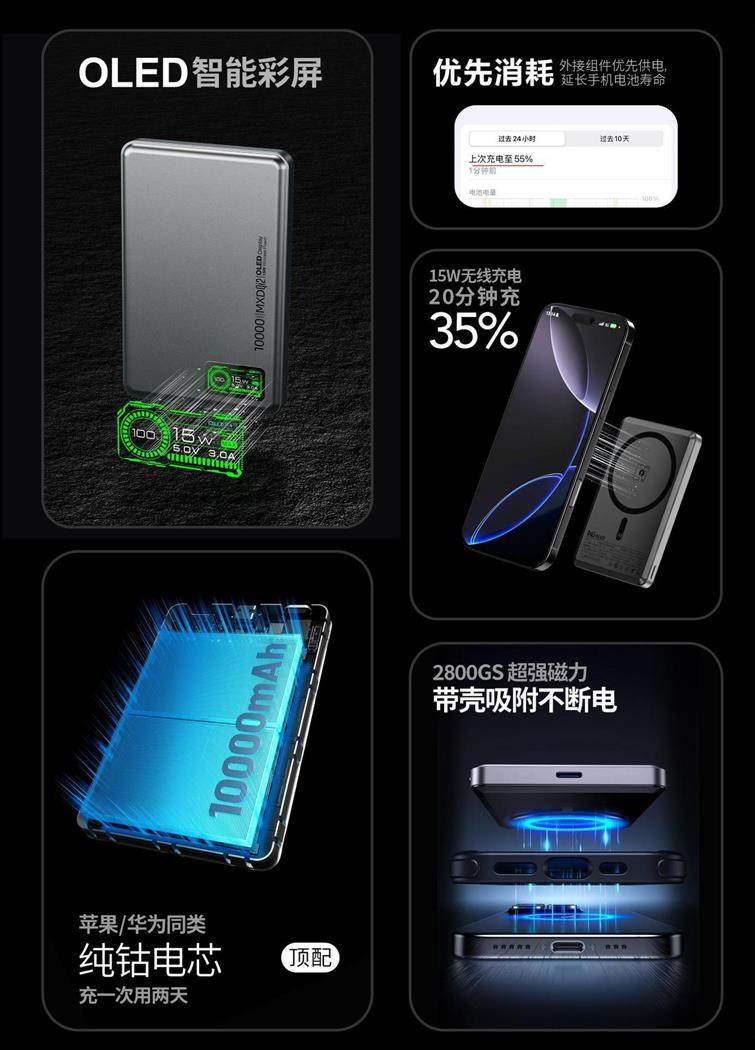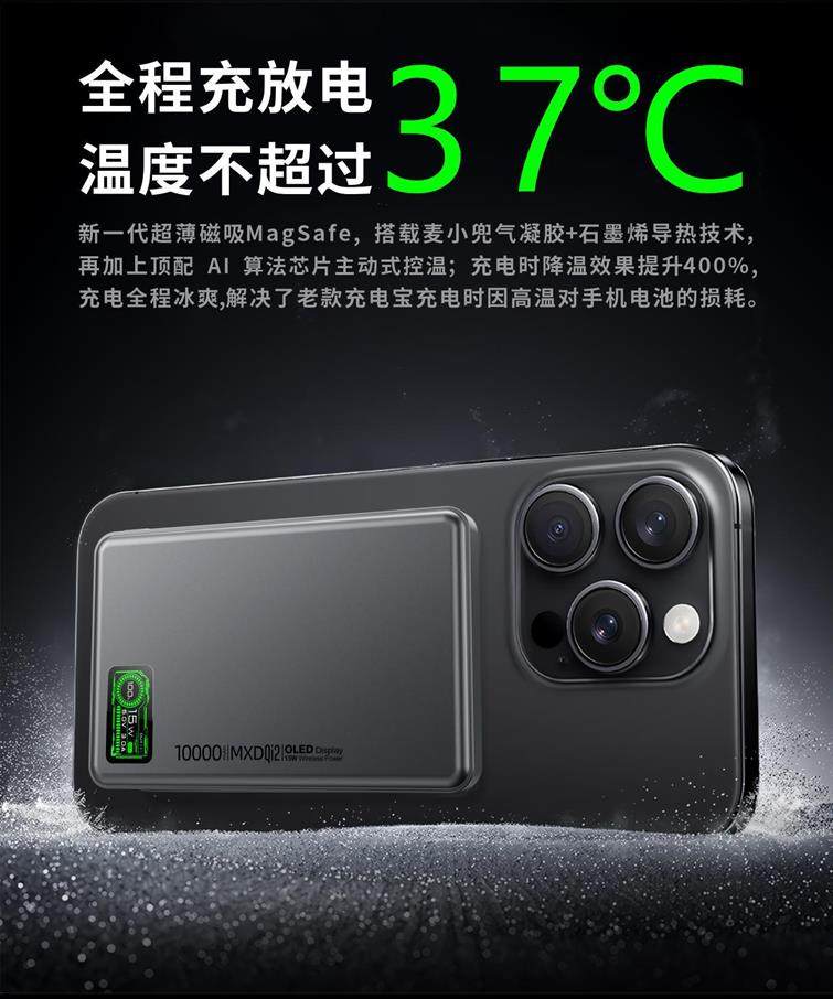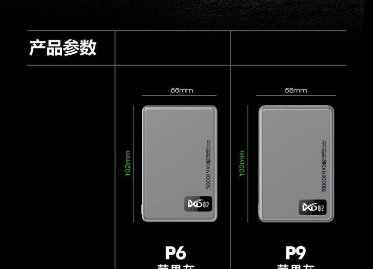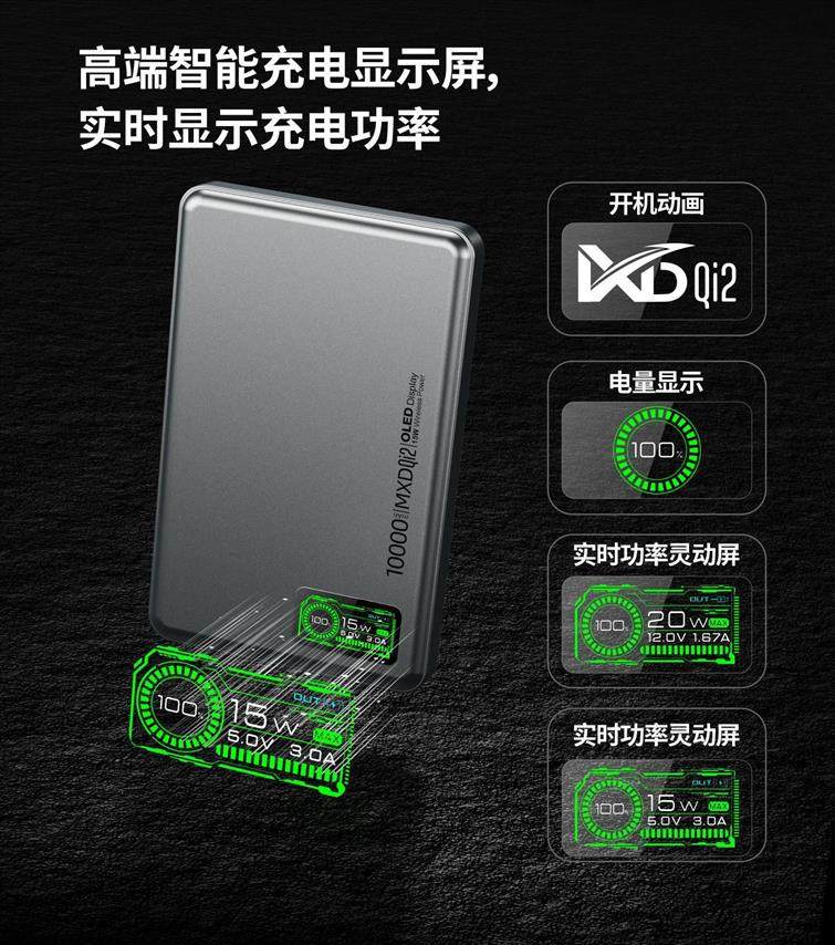 MXD P6 / P9 Qi2 OLED 3 in 1 MagSafe Power Bank, 5000mAh / 10000mAh, Dark Grey