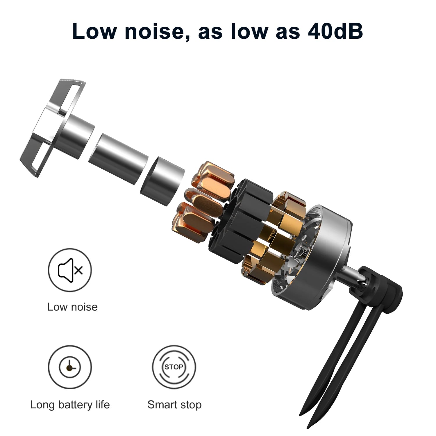 • Low noise, as low as 40dB