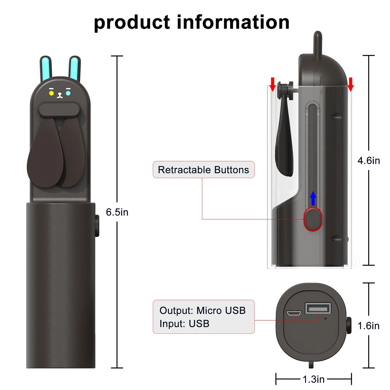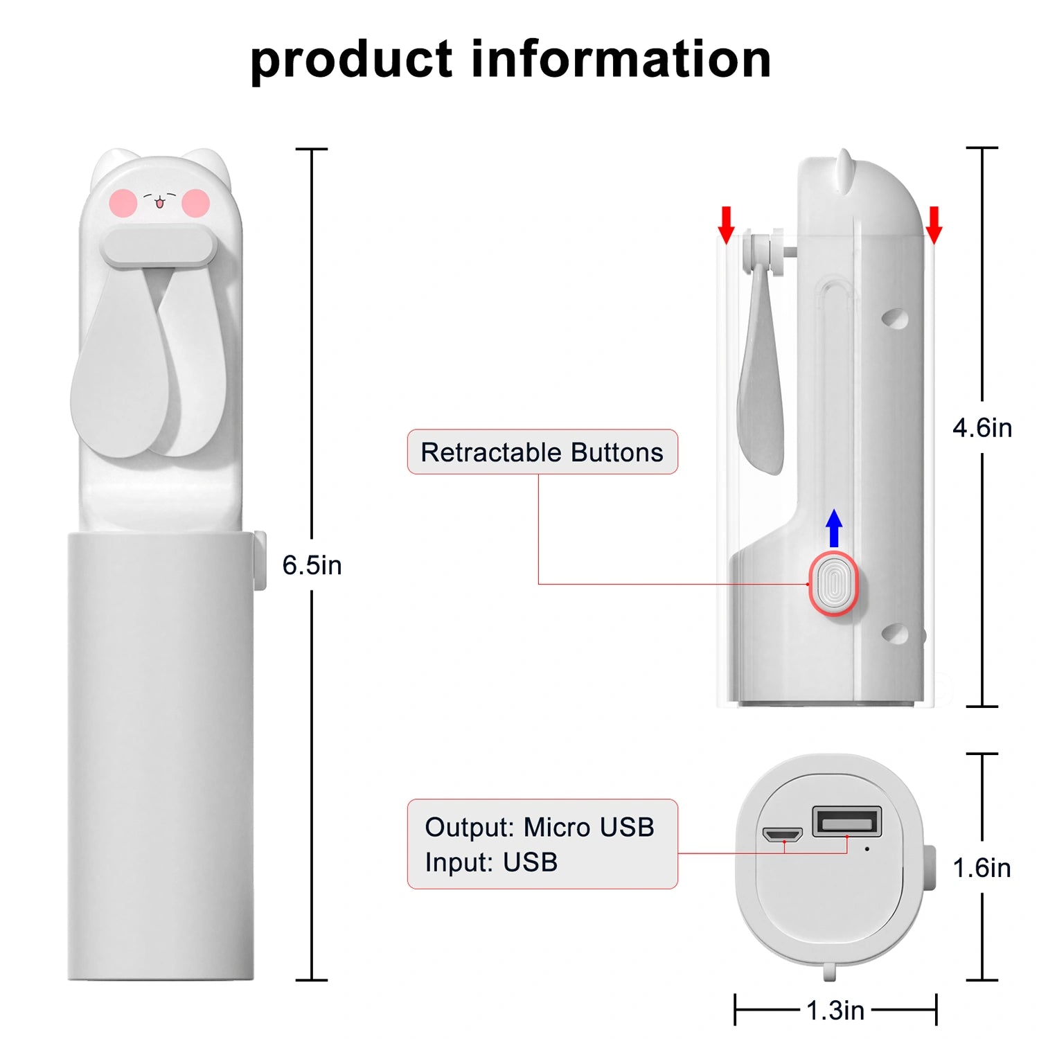 iCarer Family® Cute Telescopic Mini Fan Folding Portable Small Fan Air Cooler Lightweight USB Mini Fan