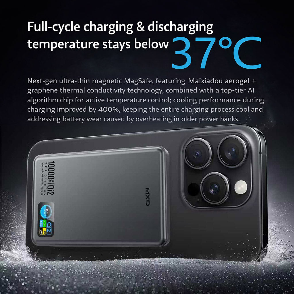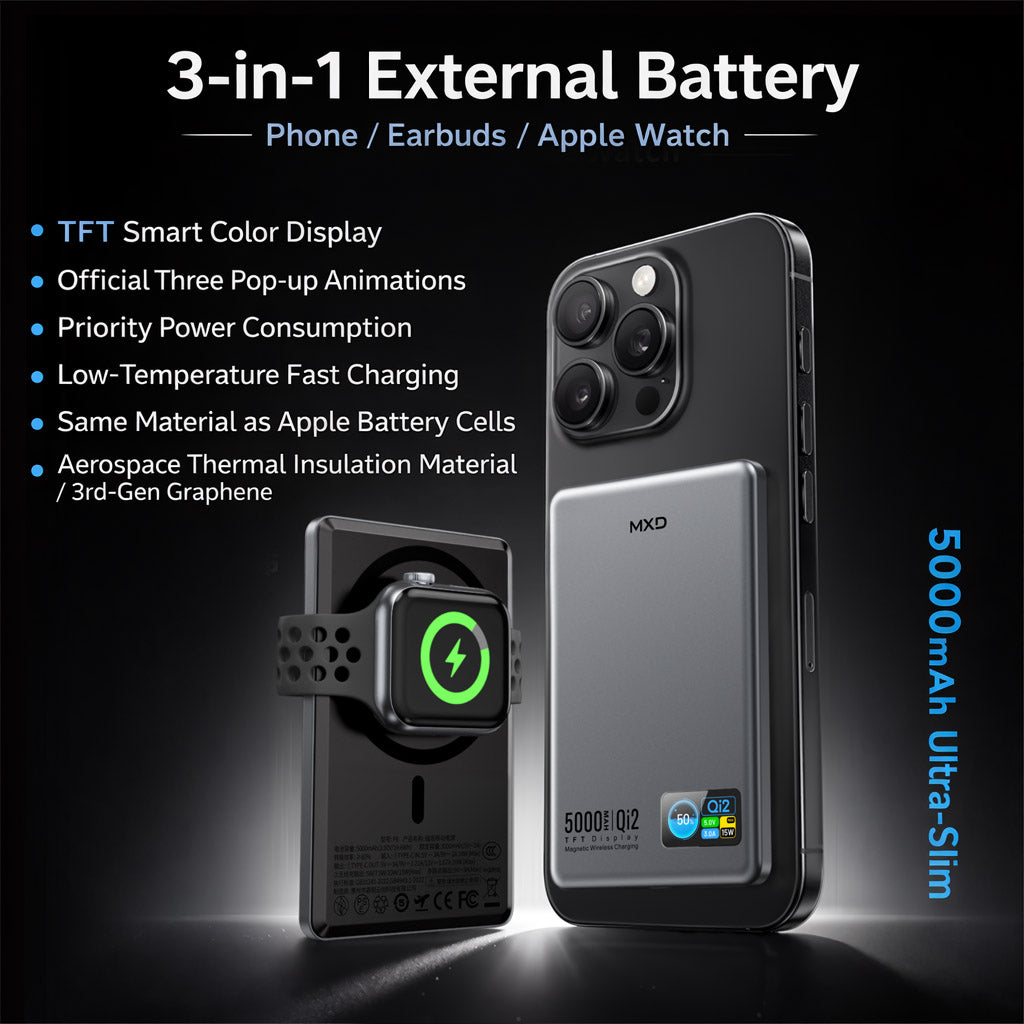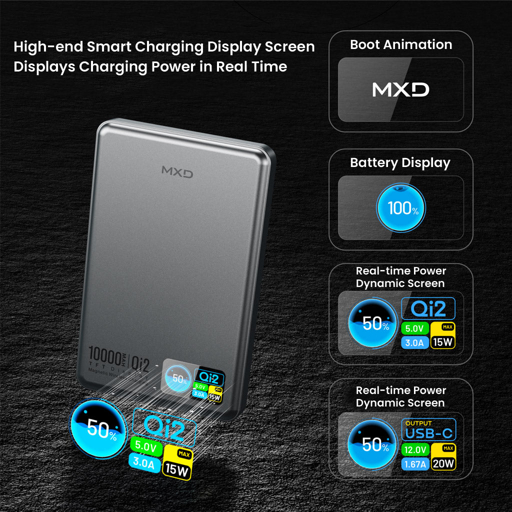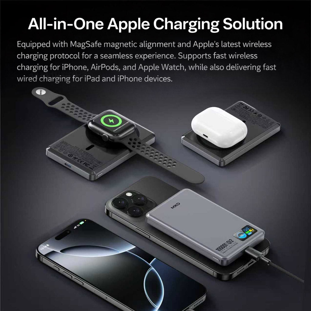 MXD P6 / P9 Qi2 TFT 3 in 1 MagSafe Power Bank, 5000mAh / 10000mAh, Dark Grey
