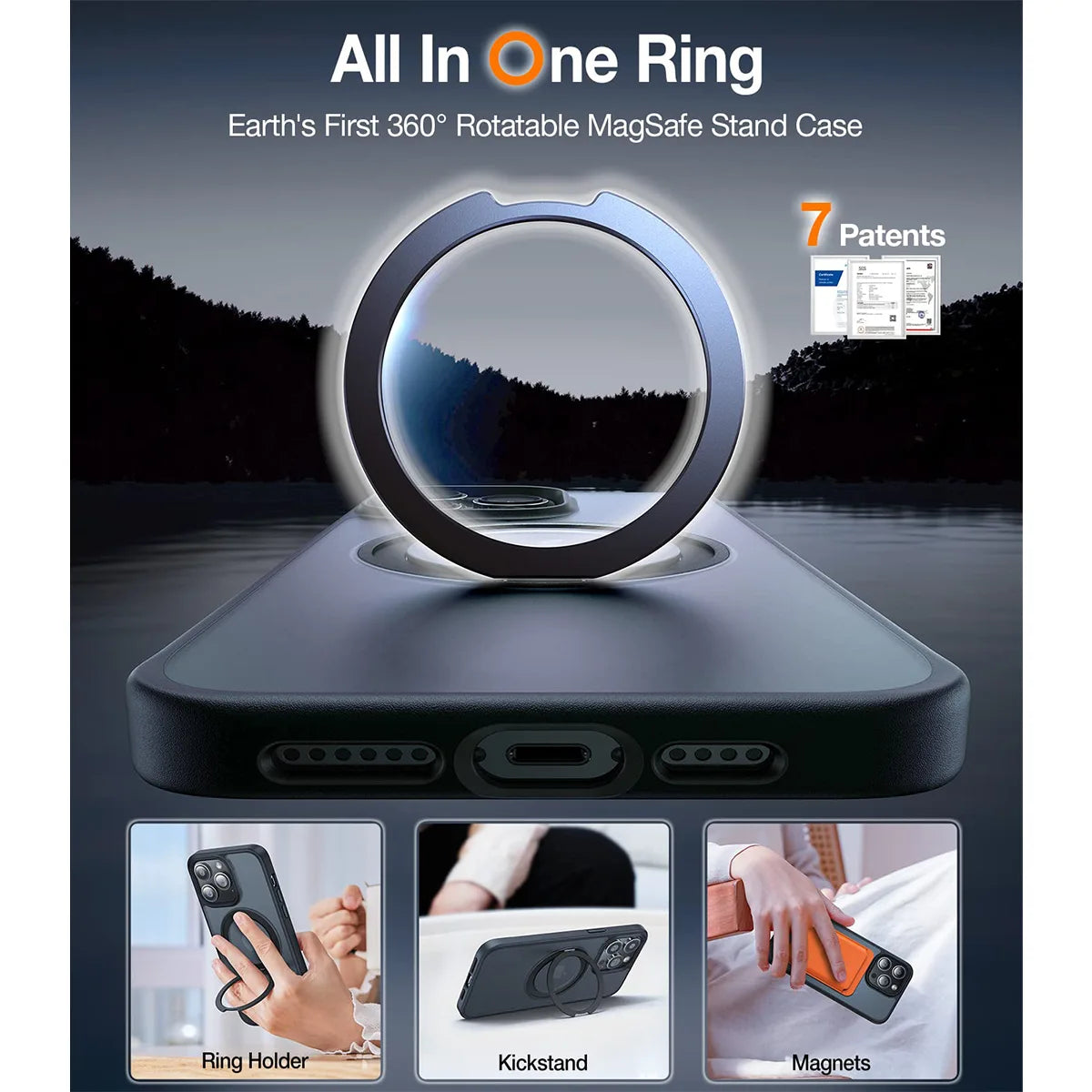- 360° Rotatable Ring (Multiple angles)