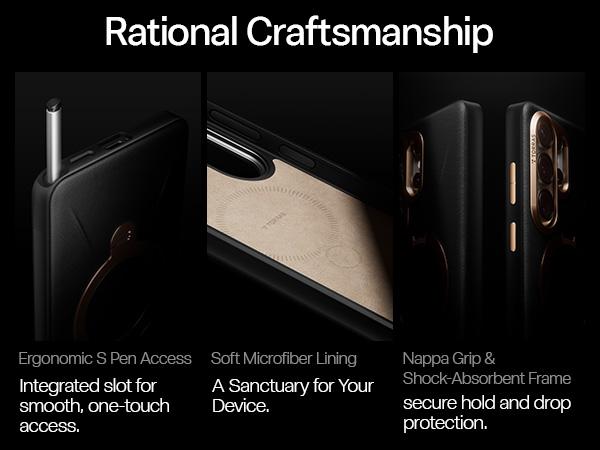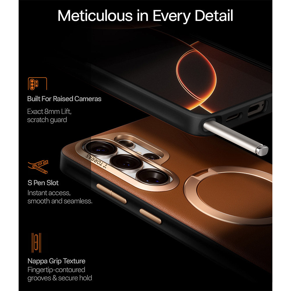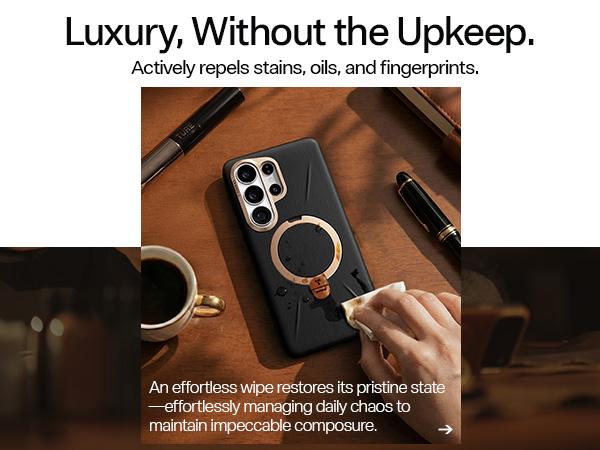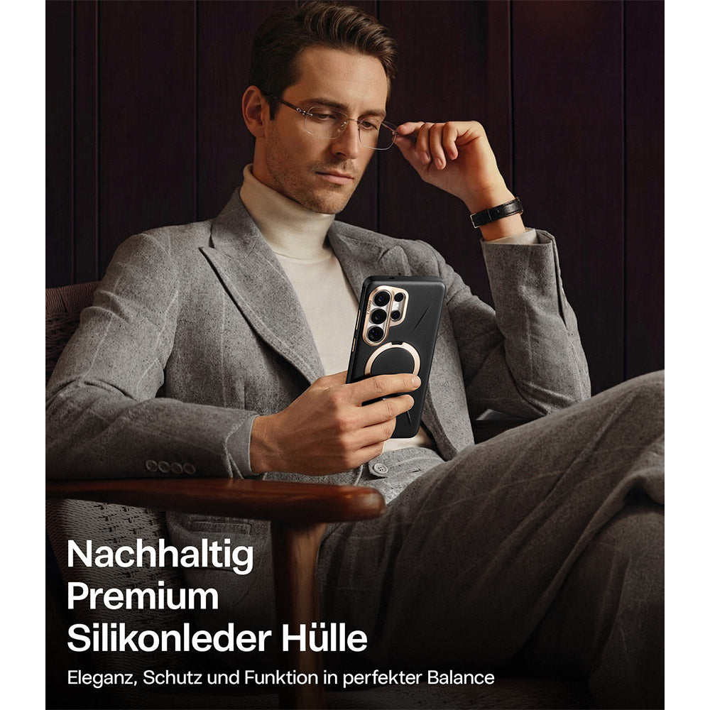 [Material Innovation: Next-Gen VegSkin Leather] For the Samsung Galaxy S26 Ultra case, features premium organic silicone leather with Italian-inspired embossing craftsmanship. delivering a soft, refined, and luxurious feel. Made with newly upgraded, certified eco-friendly materials, it features an easy-clean surface that resists stains and fingerprints—keeping your case looking polished with minimal effort. Designed to age beautifully, it maintains its elegance and premium texture day after day.