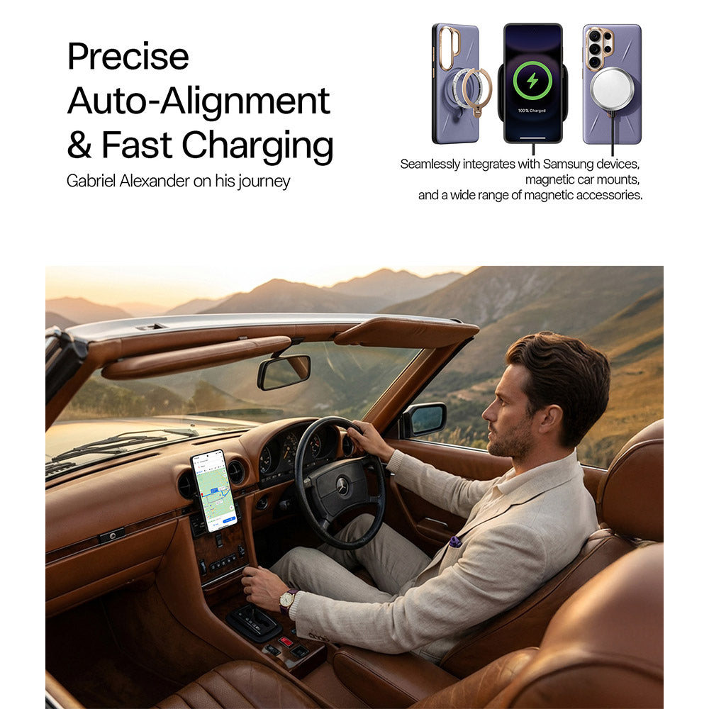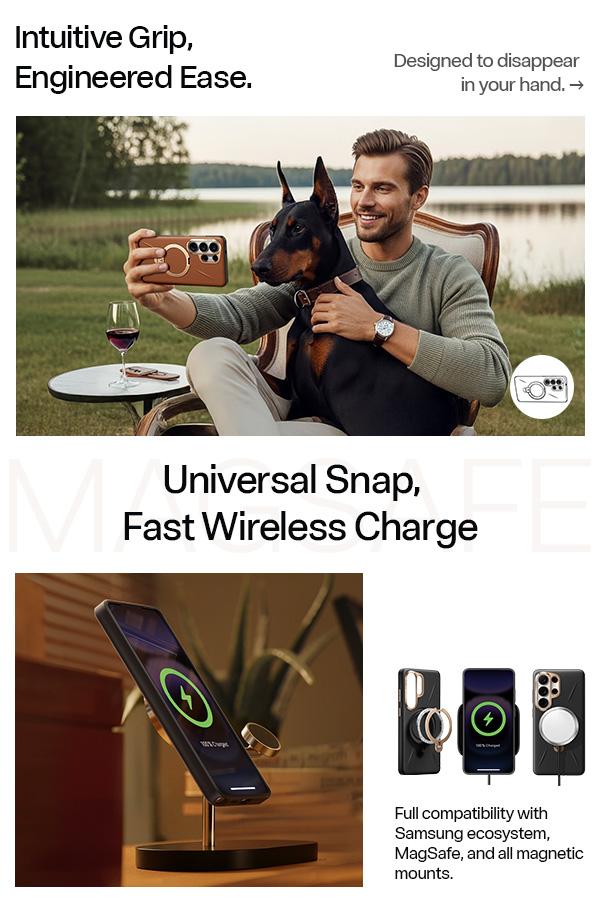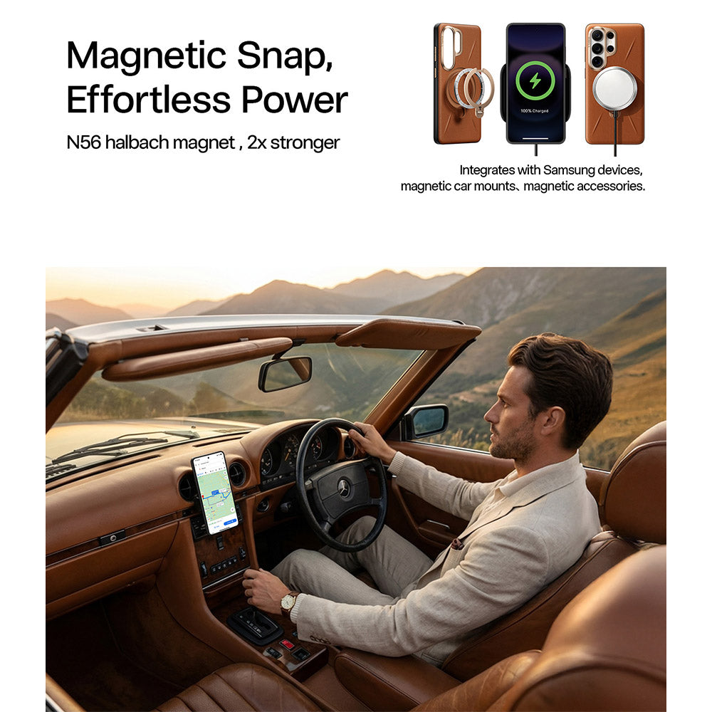 [2× Magnetic System: Precision Patented Design] Powered by advanced N56 Halbach magnets, it ensures ultra-stable alignment with wireless chargers and magnetic accessories. Designed for Samsung S26 Ultra cases, it boosts magnetic strength and precise positioning, minimizing slips and charging interruptions. Fully compatible with MagSafe, magnetic mounts, chargers, and car holders. Snap on for effortless, secure connection.