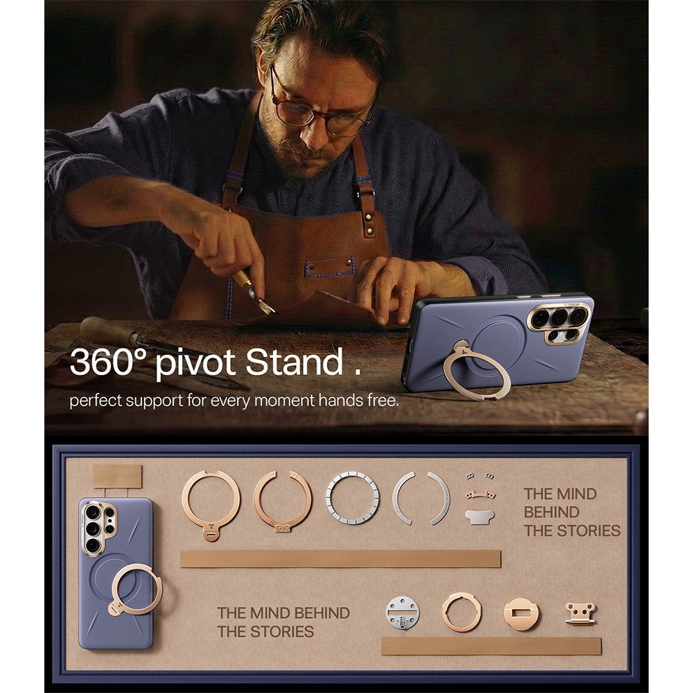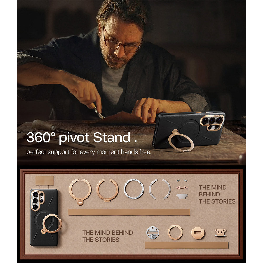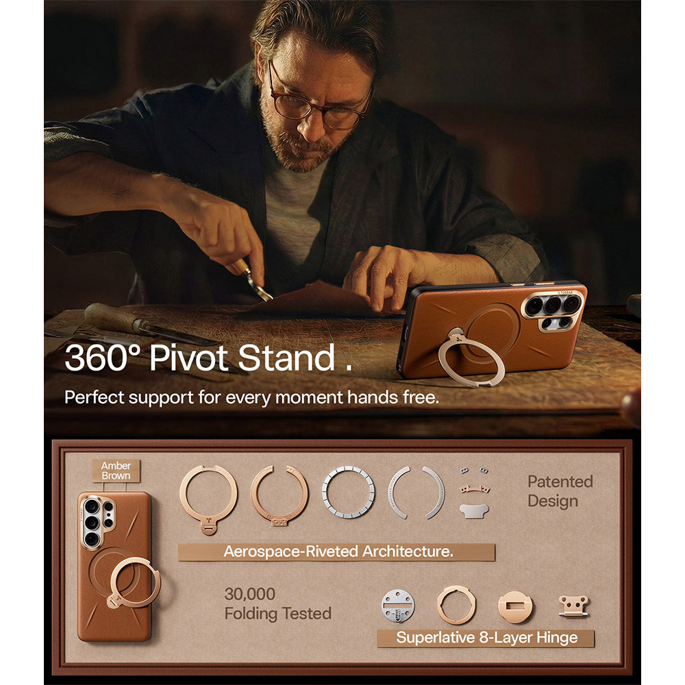 [Multi-Functional Design: Aerospace-Grade 360° Pivot Stand] Built with aerospace-grade aluminum, from meetings to coffee shops, it adapts effortlessly to both productivity and relaxation. Supports 90° shooting, 60° video, 30° landscape mode, keeping your device stable and view aligned. Tested 3,000+ folds with an 8-layer precision hinge. Folds completely flat, preserving a slim, seamless profile unlike other bulky S26 Ultra cases.