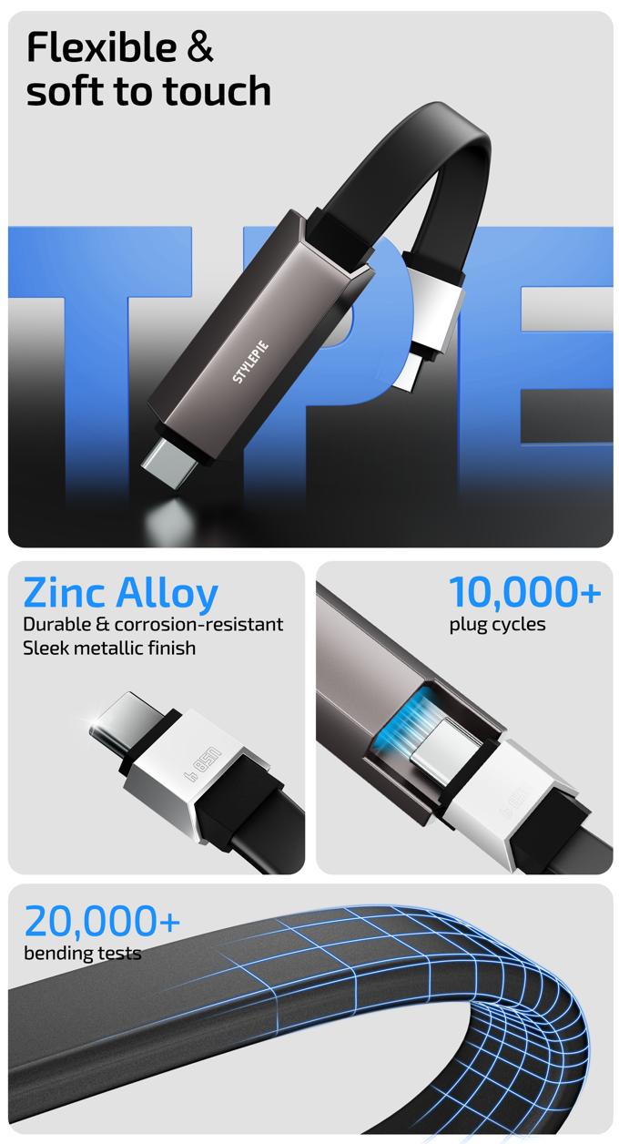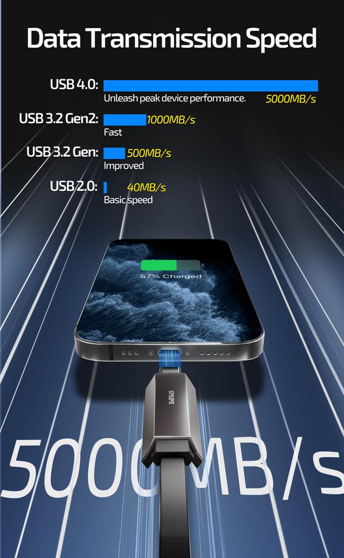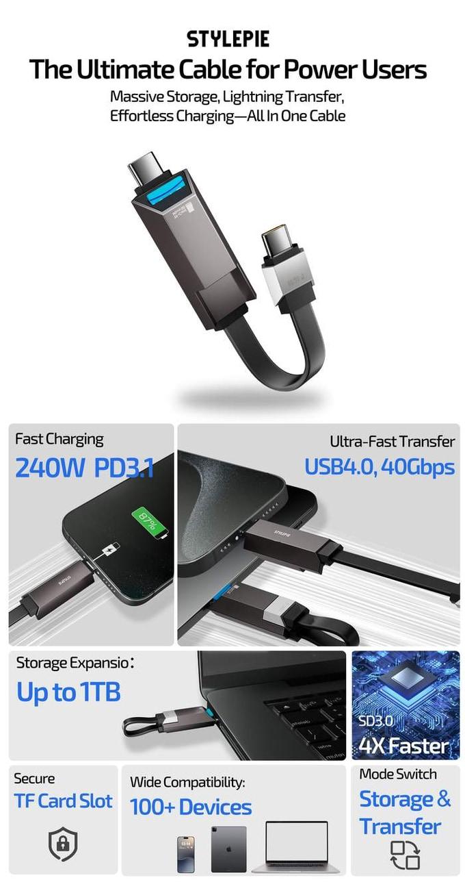 STYLEPIE C90-U USB4.0,40Gbps 2TB,240W 4 in 1 Cable, 6cm, Black