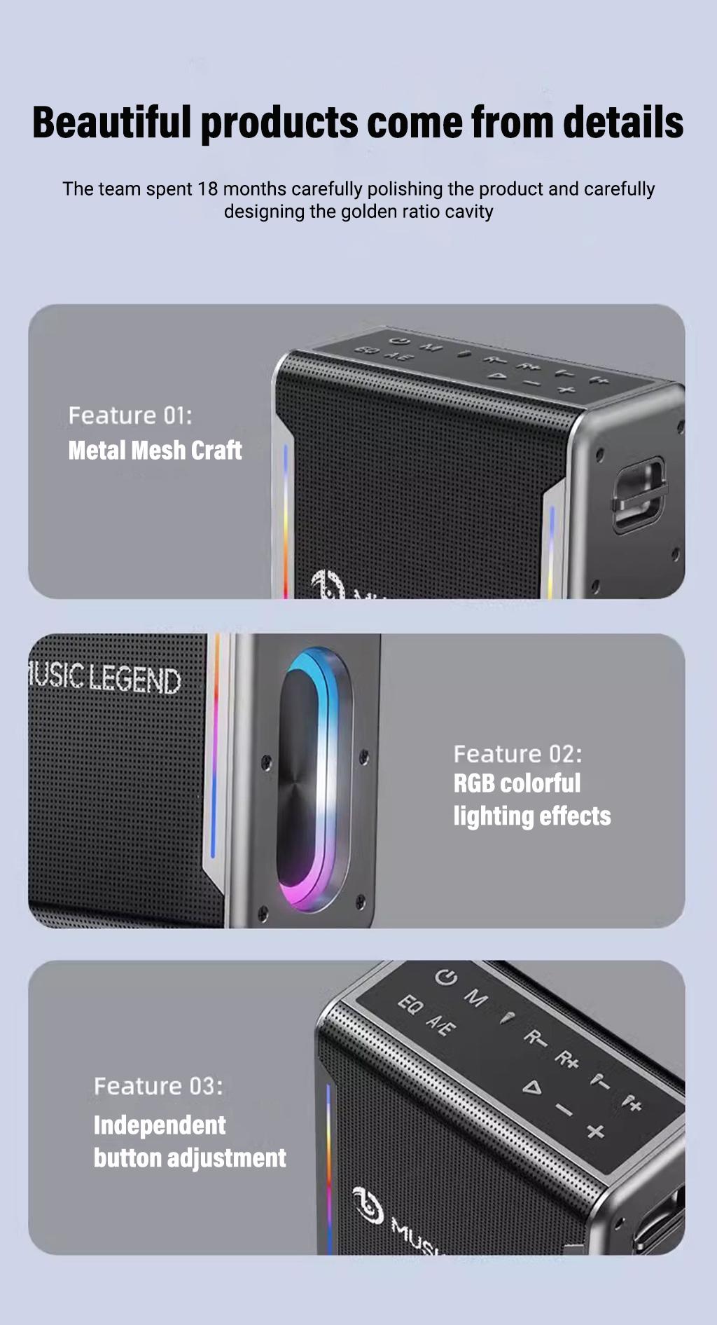 MUSIC LEGEND V8 Pro Bluetooth Speaker With 2 Microphones