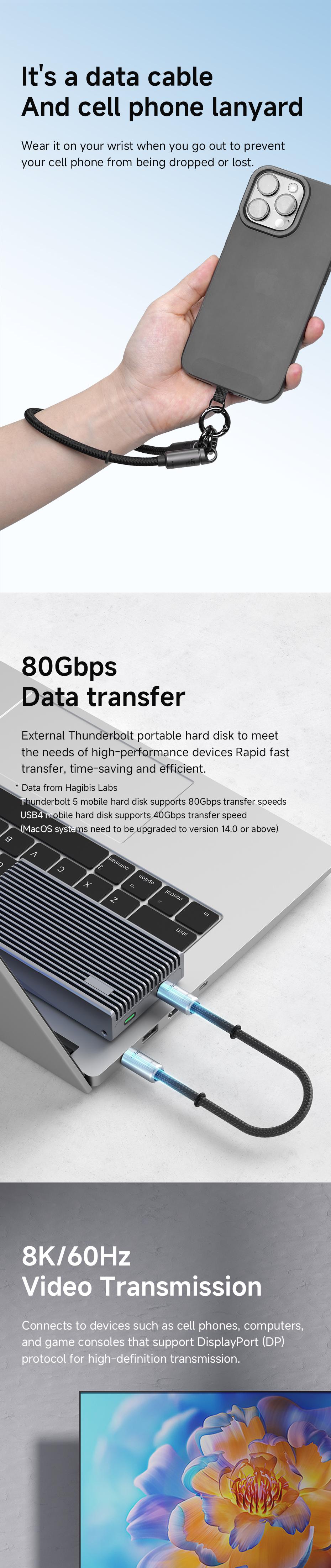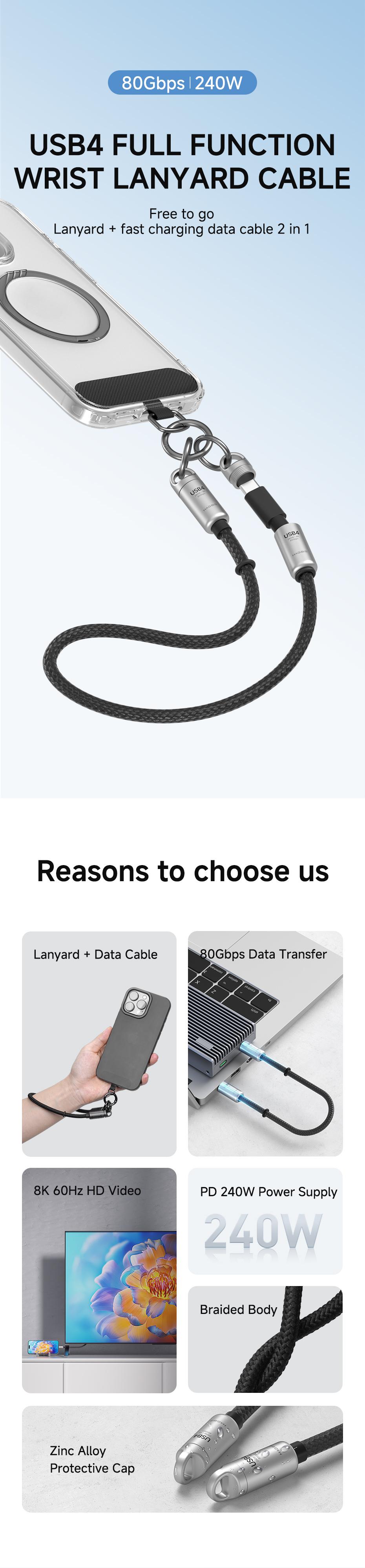 HABIGIS GS200 240W USB4 Full Function Wrist Lanyard Cable,30cm
