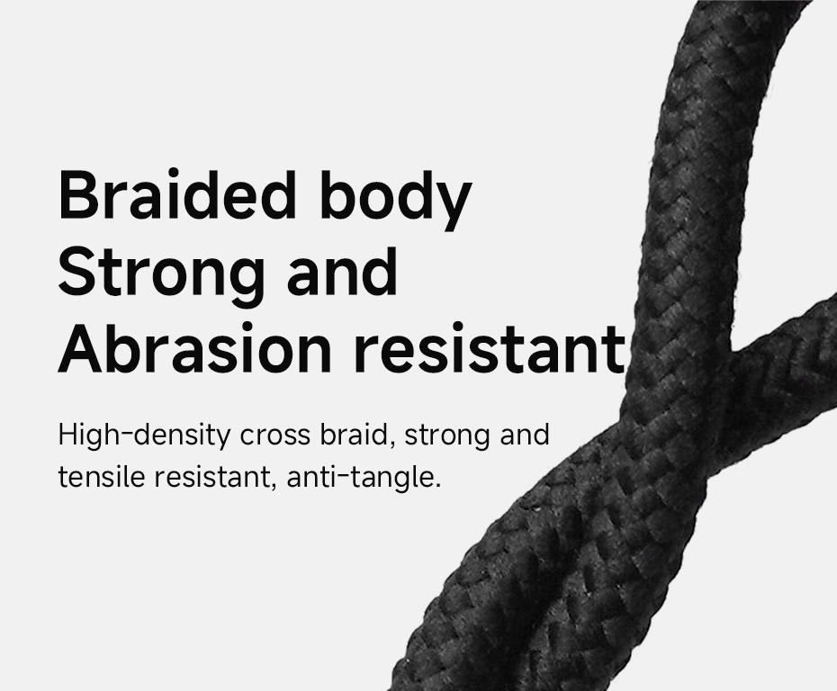 - Braided body:Strong and abrasion resistant,High-density cross braid, strong and tensile resistant, anti-tangle.