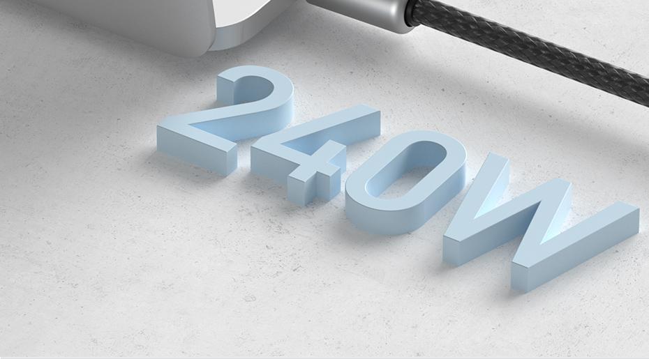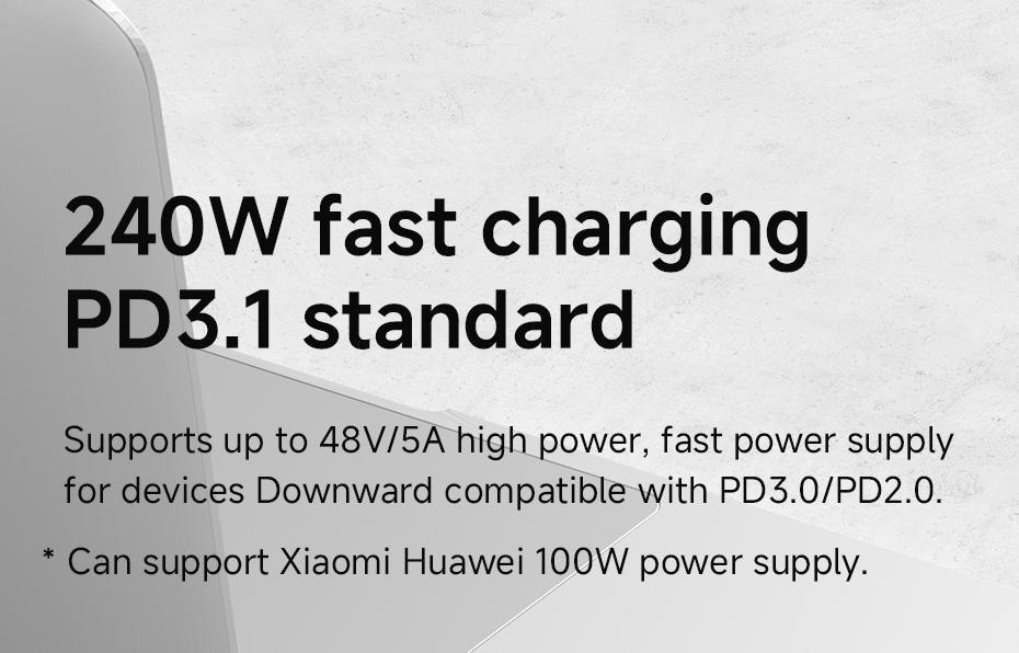 - 240W fast charging PD3.1 standard:Supports up to 48V/5A high power, fast power supply for devices,Downward compatible with PD3.0/PD2.0.