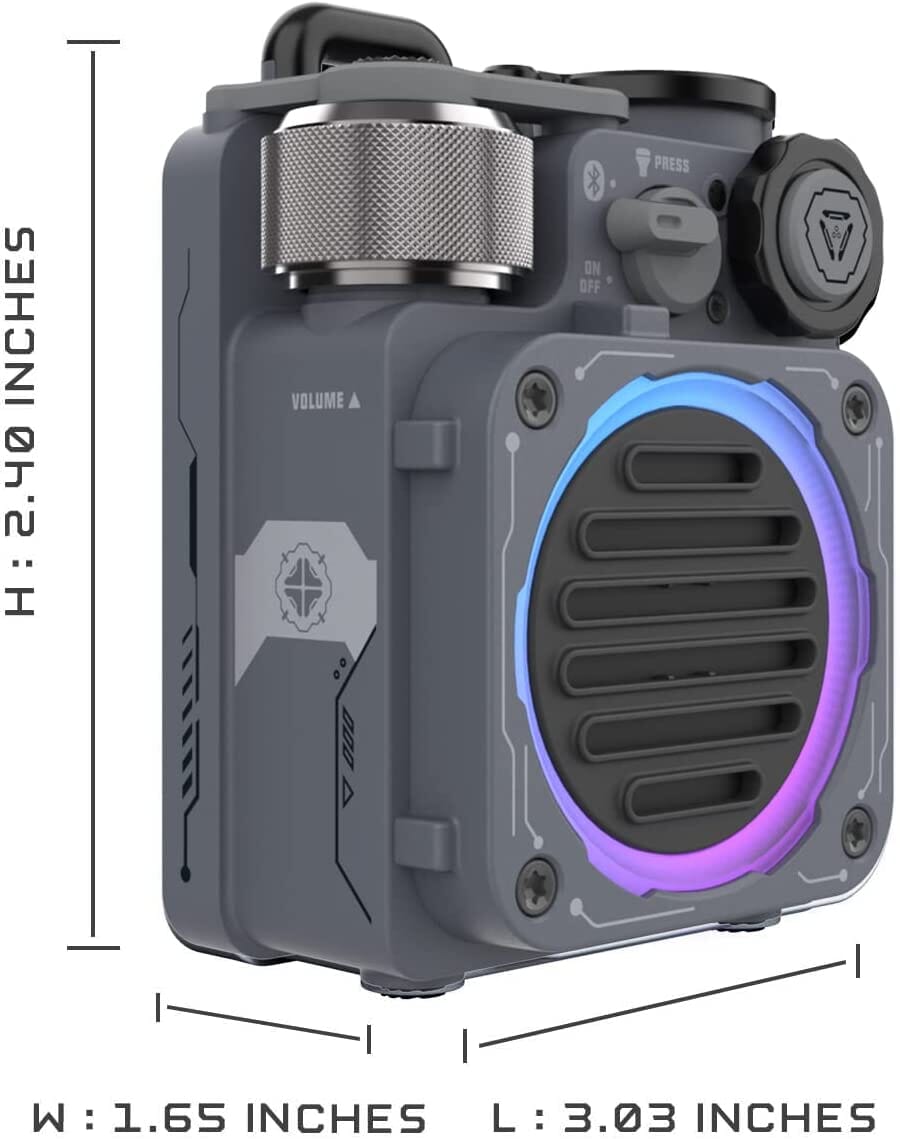· Rugged Portable Speaker: Ipx-5 waterproof and Dustproof with a built-in flashlight, rugged metal housing protects it on all of your outdoor adventures and is very easy to secure to any Backpack or Bag by a lanyard(needs to be purchased separately)