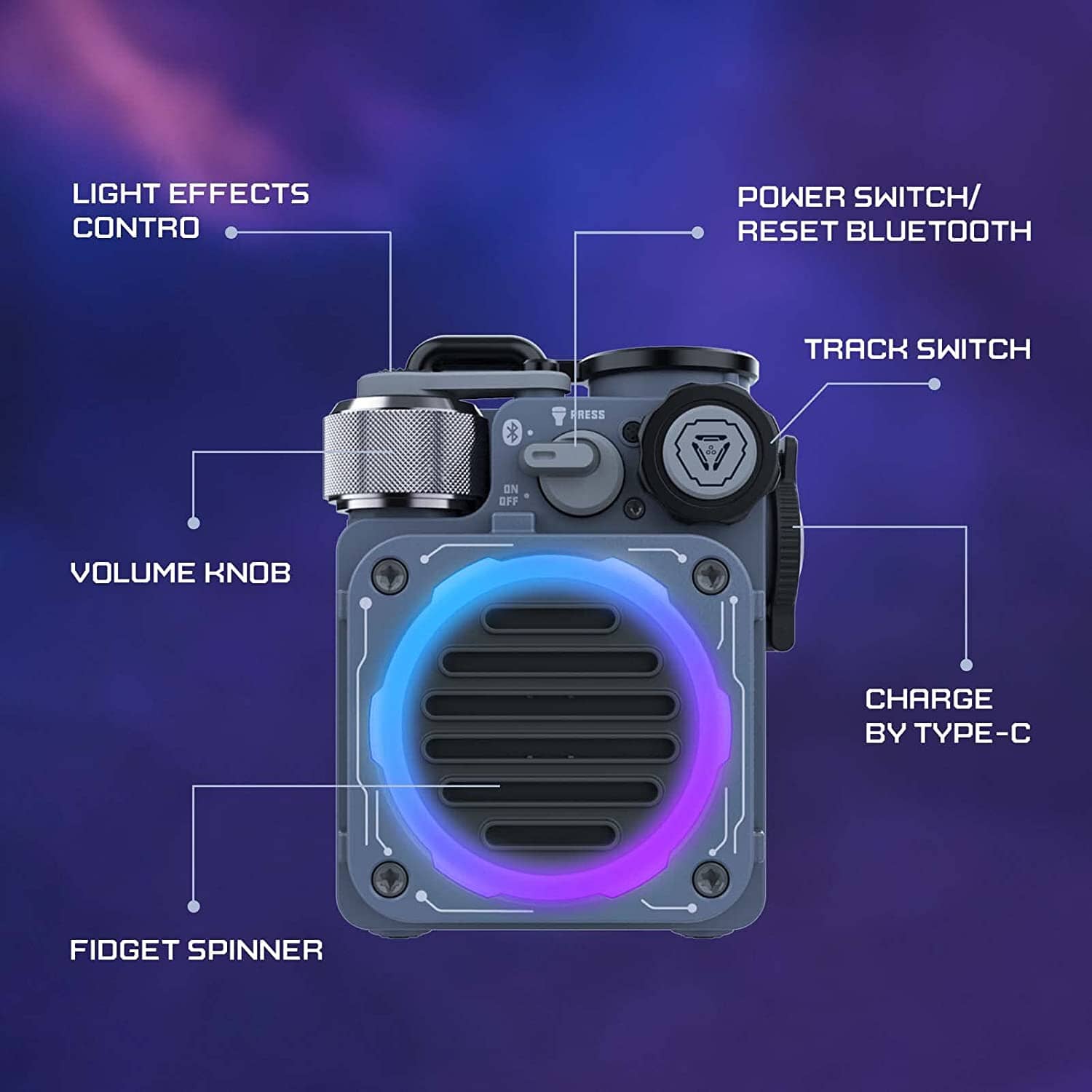 · Fidget Spinner: Design idea from the spacecraft, release the nervous energy and stress reduction anxiety relief. The speaker is only 245g, palm mini size easy for one-handed use, lightweight, pocket size