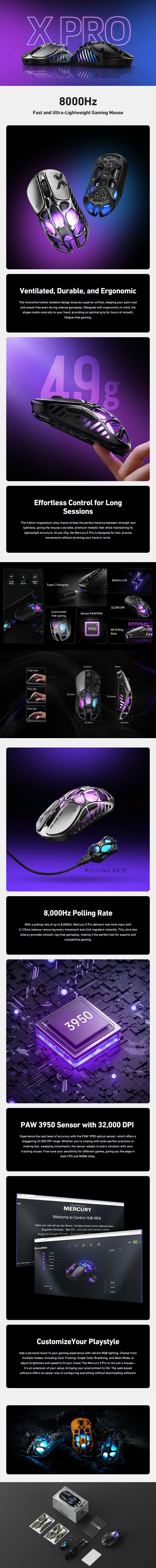 GravaStar Mercury X Pro Wireless Gaming Mouse+8K Dongle