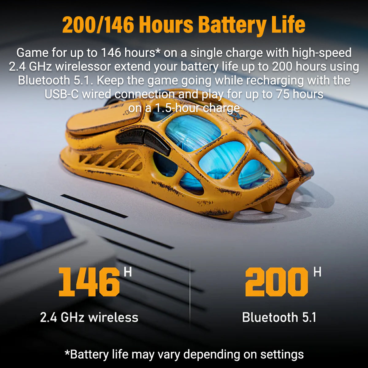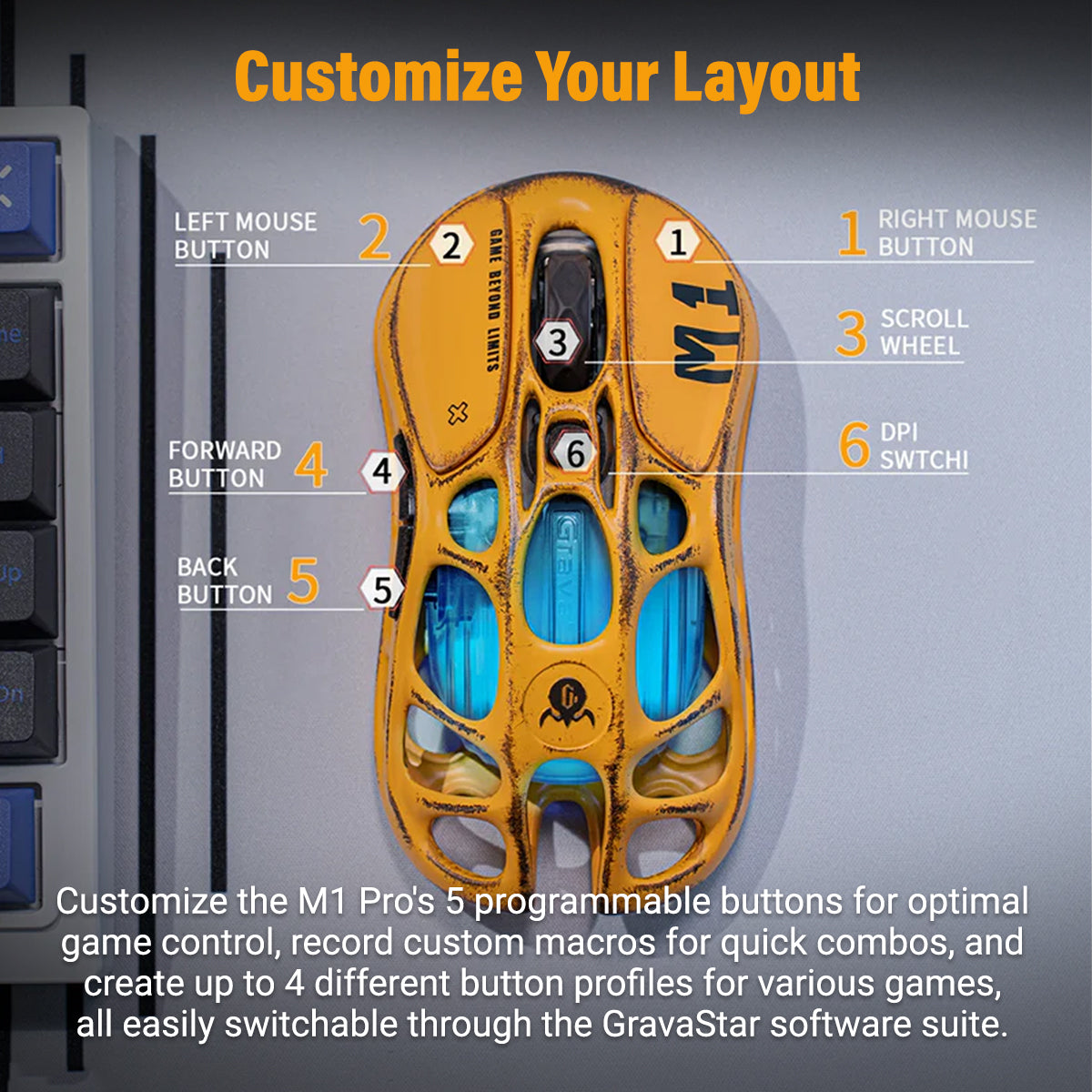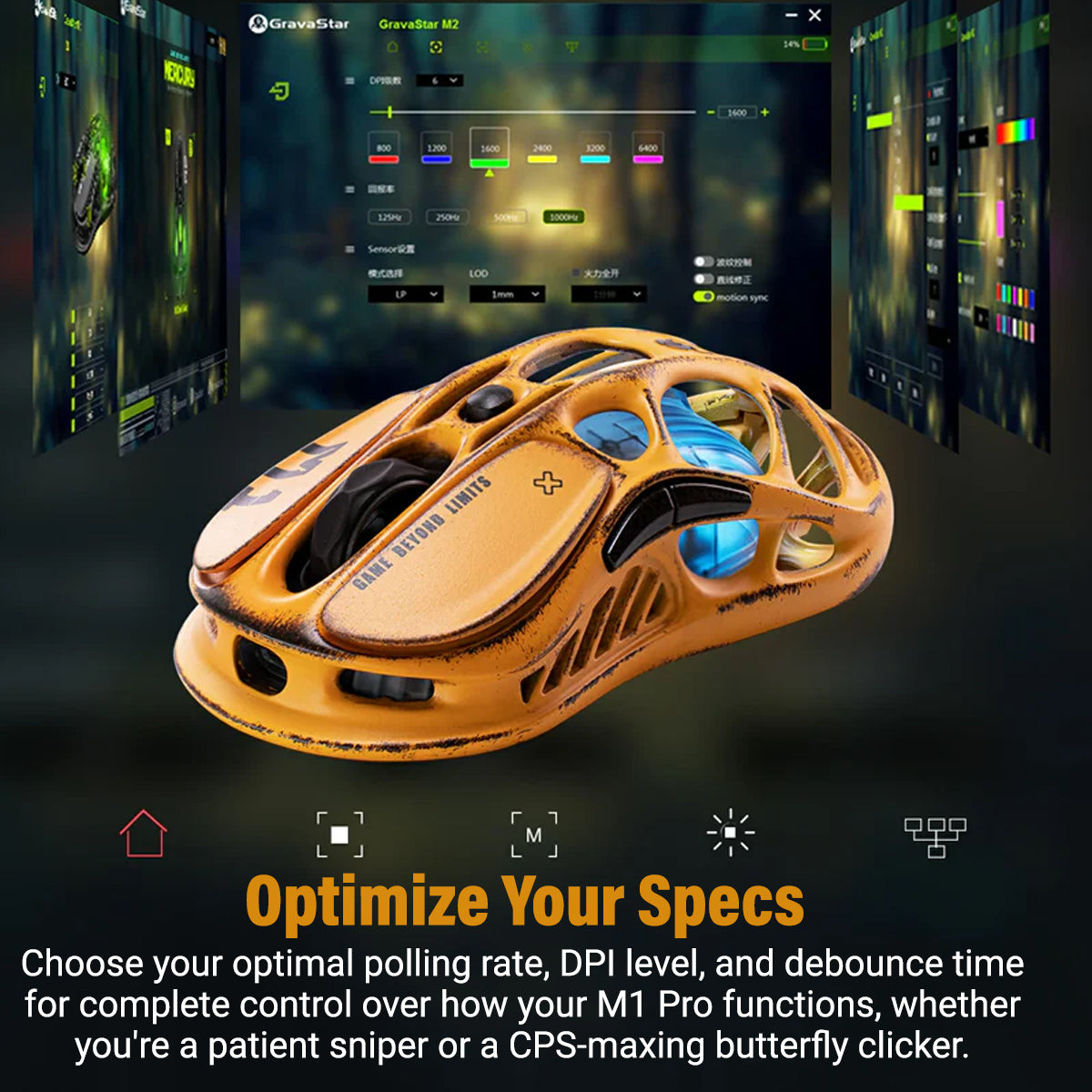 GravaStar Mercury M1 Pro Wireless Gaming Mouse - Battle-Worn Version Yellow + 4K Dongle