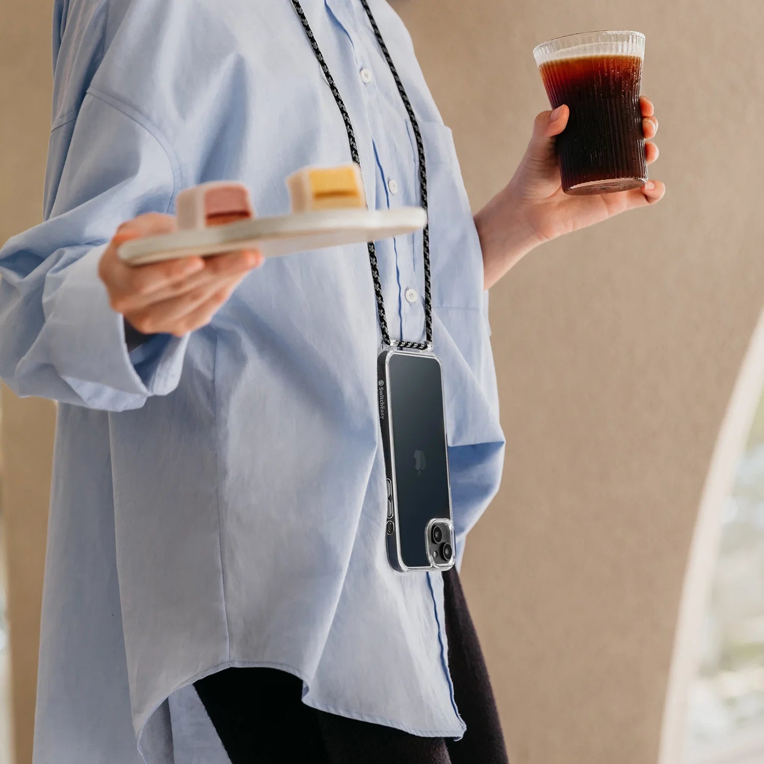 The Play crystal clear bumper case features a colorful woven lanyard that frees your hands for other tasks. It offers three convenient carrying options (tethered handheld, over the neck, or by your side), easily adapting to different scenarios. Play is not only a protective case but also a fashionable accessory that complements your style.