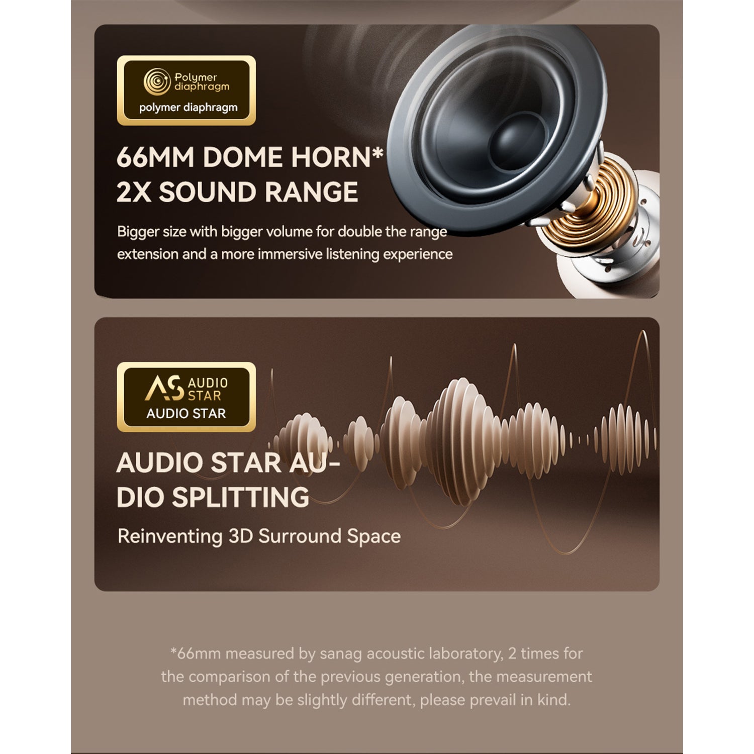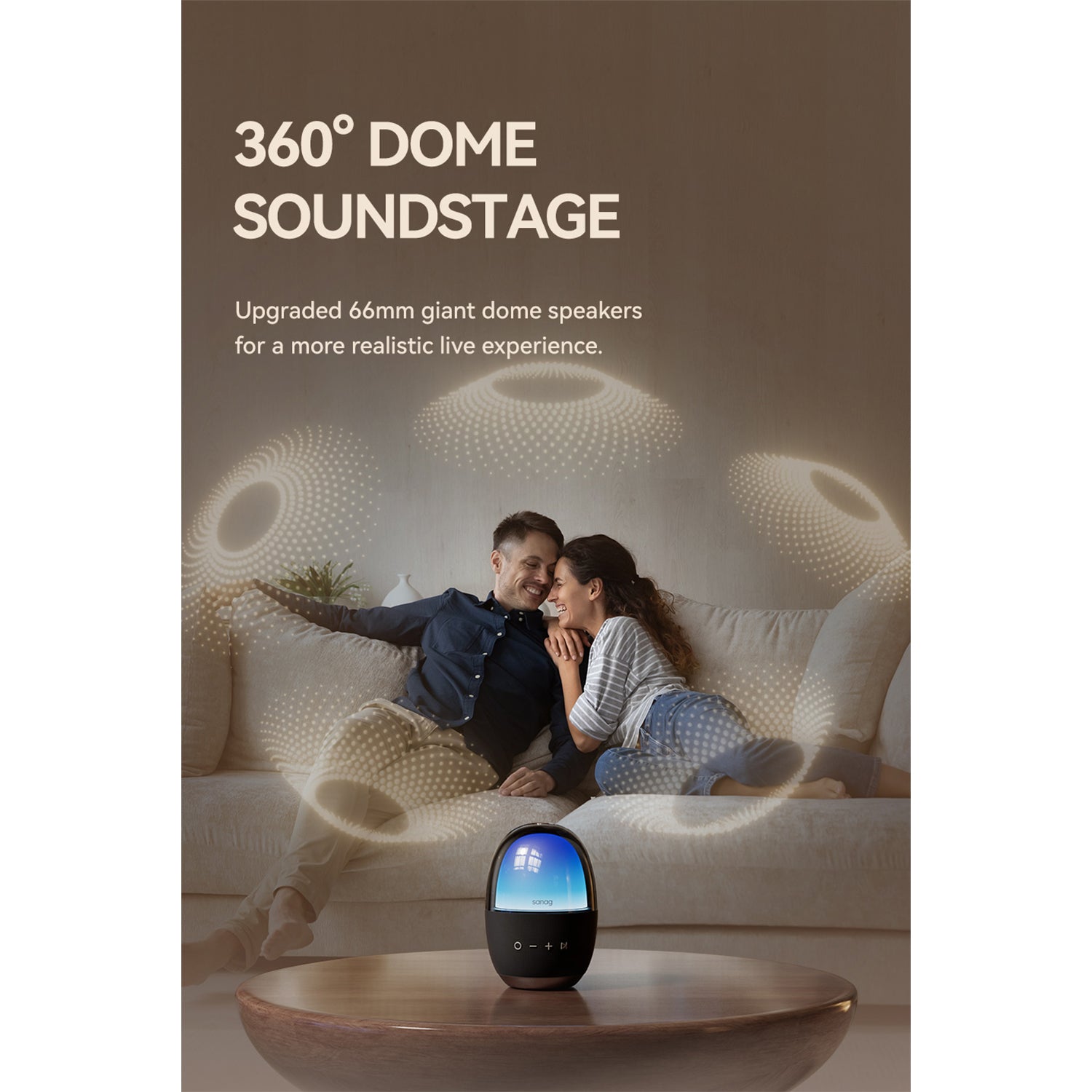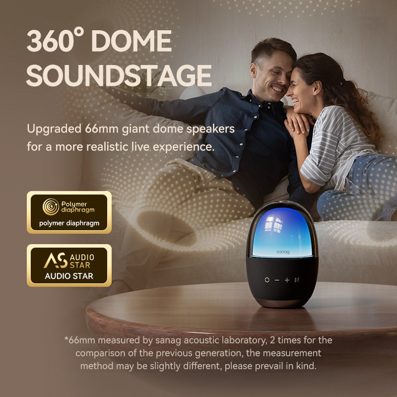- Enjoy dynamic 360° surround stereo sound with upgraded giant 66mm dome speakers for a live concert ambiance.