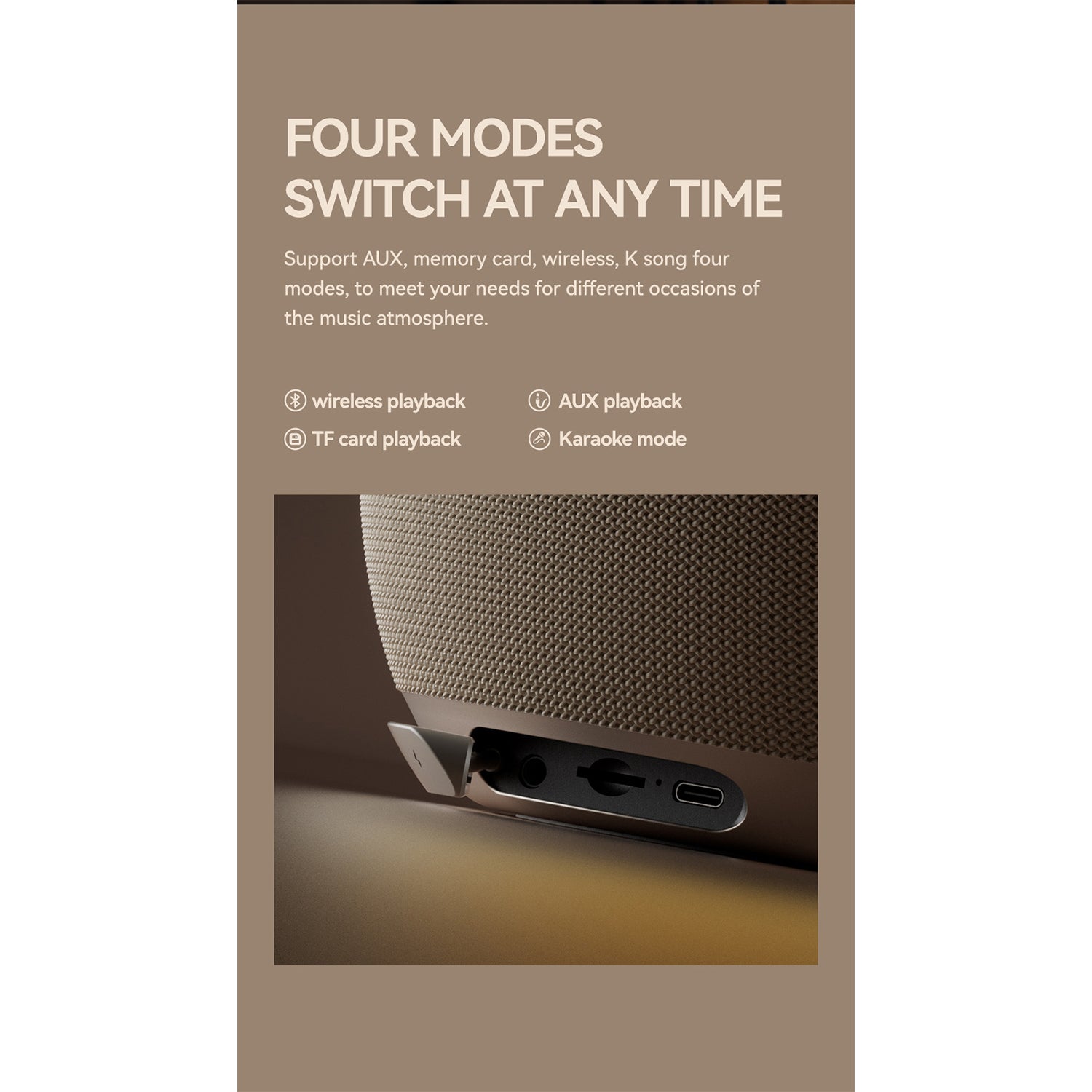 - Experience music in various ways with support for AUX, TF memory card, Bluetooth, and Karaoke modes, catering to different musical atmospheres for various occasions.