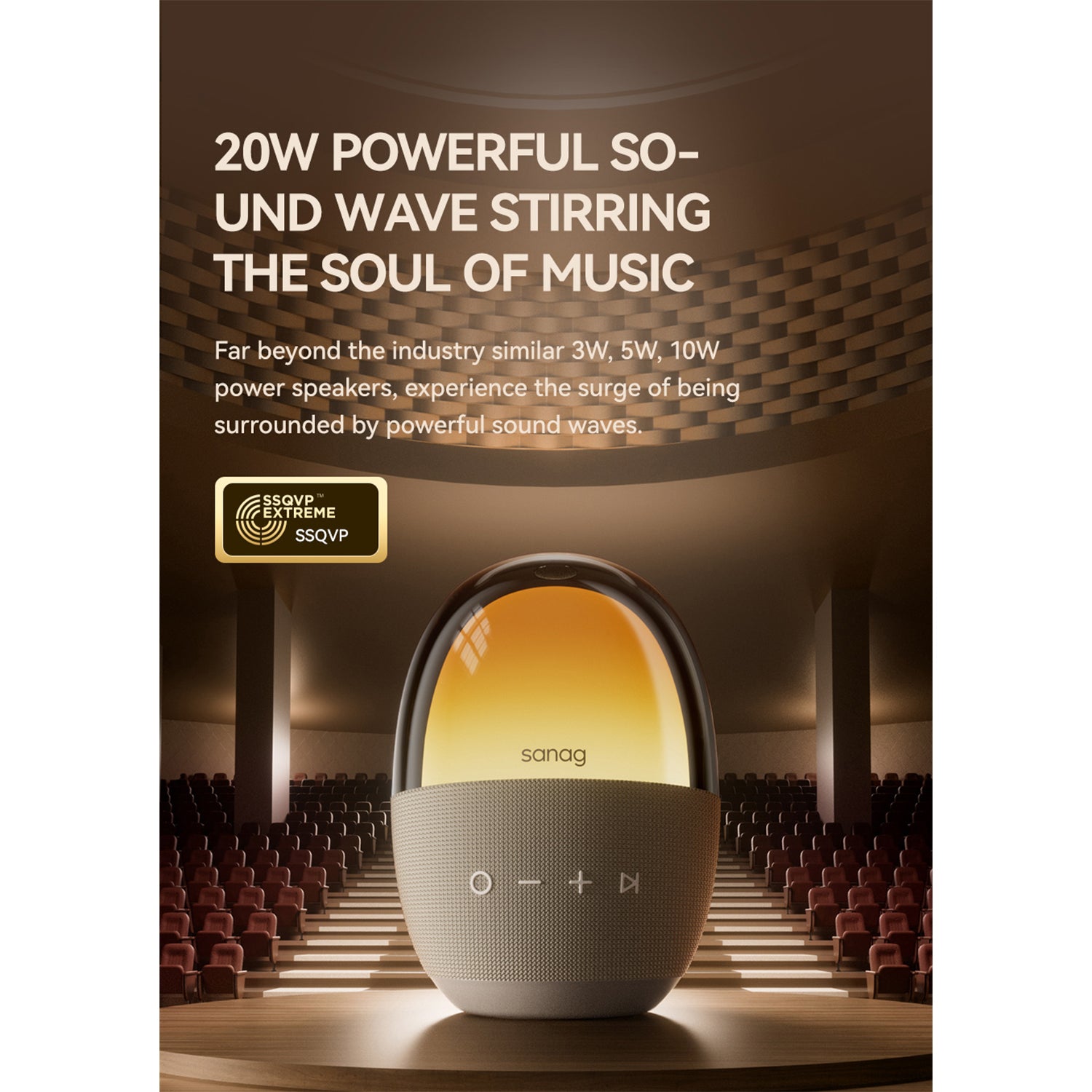 2. 20W Powerful Bass: