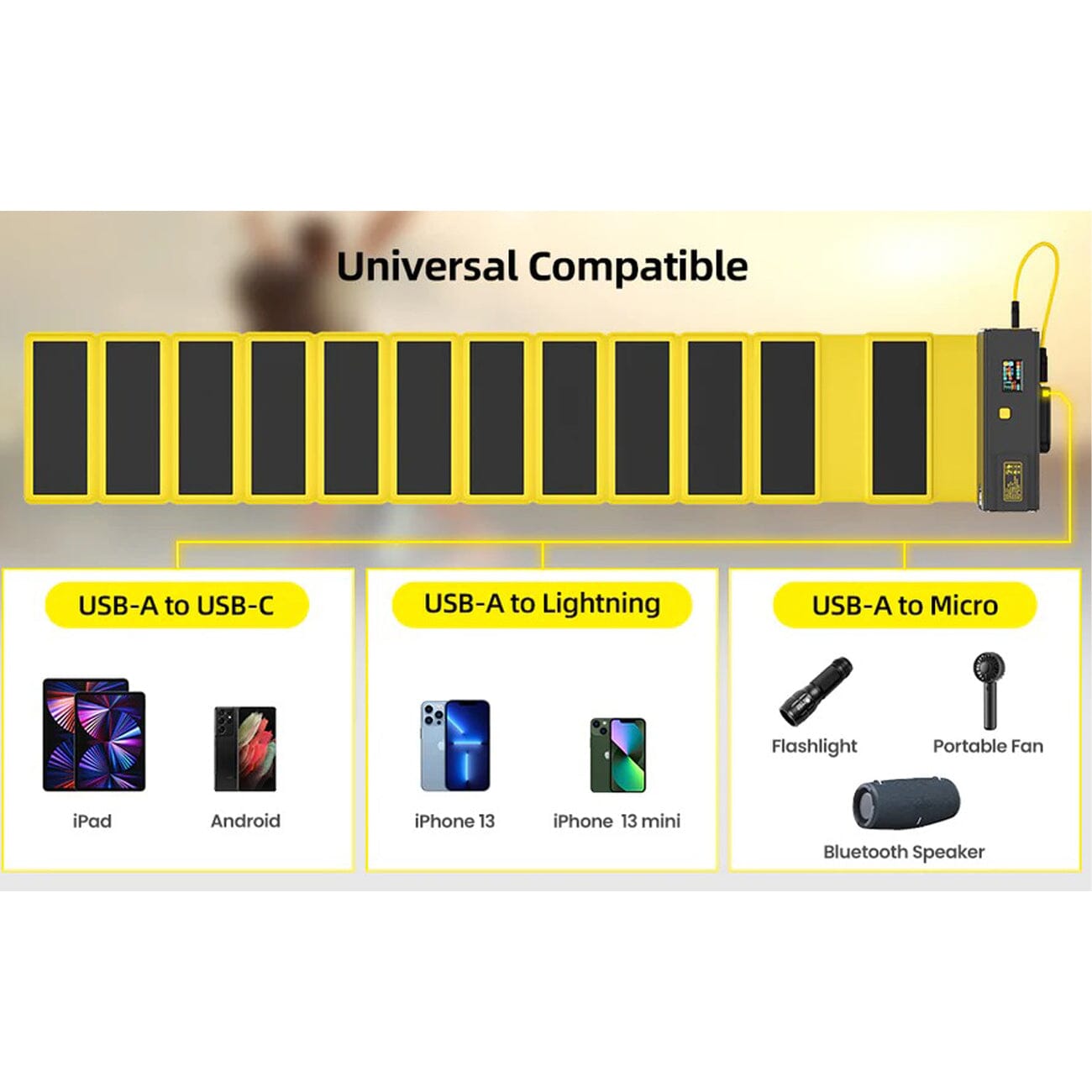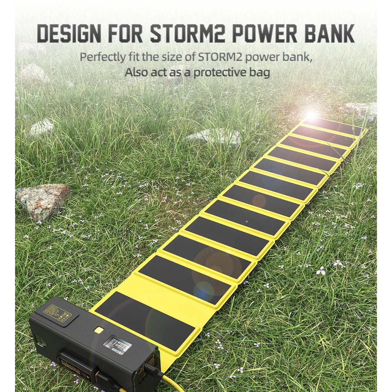 Built specifically for outdoor enthusiasts, the Storm 2 Solar Panel fits perfectly on your Storm 2 power bank source, protects your Storm 2 well, and converts sunlight into electricity to be stored in your power bank. With solar panels available wherever there is sunlight, you can get rid of the anxiety about the power of your mobile device. You can use it to charge not only your power bank, but also your cell phone, flashlight and other devices. The 12 foldable solar panels receive energy over a wide area, providing you with a maximum output of 12W and charging 12 times faster than a single panel. The foldable solar panels make it easy to carry and compact.