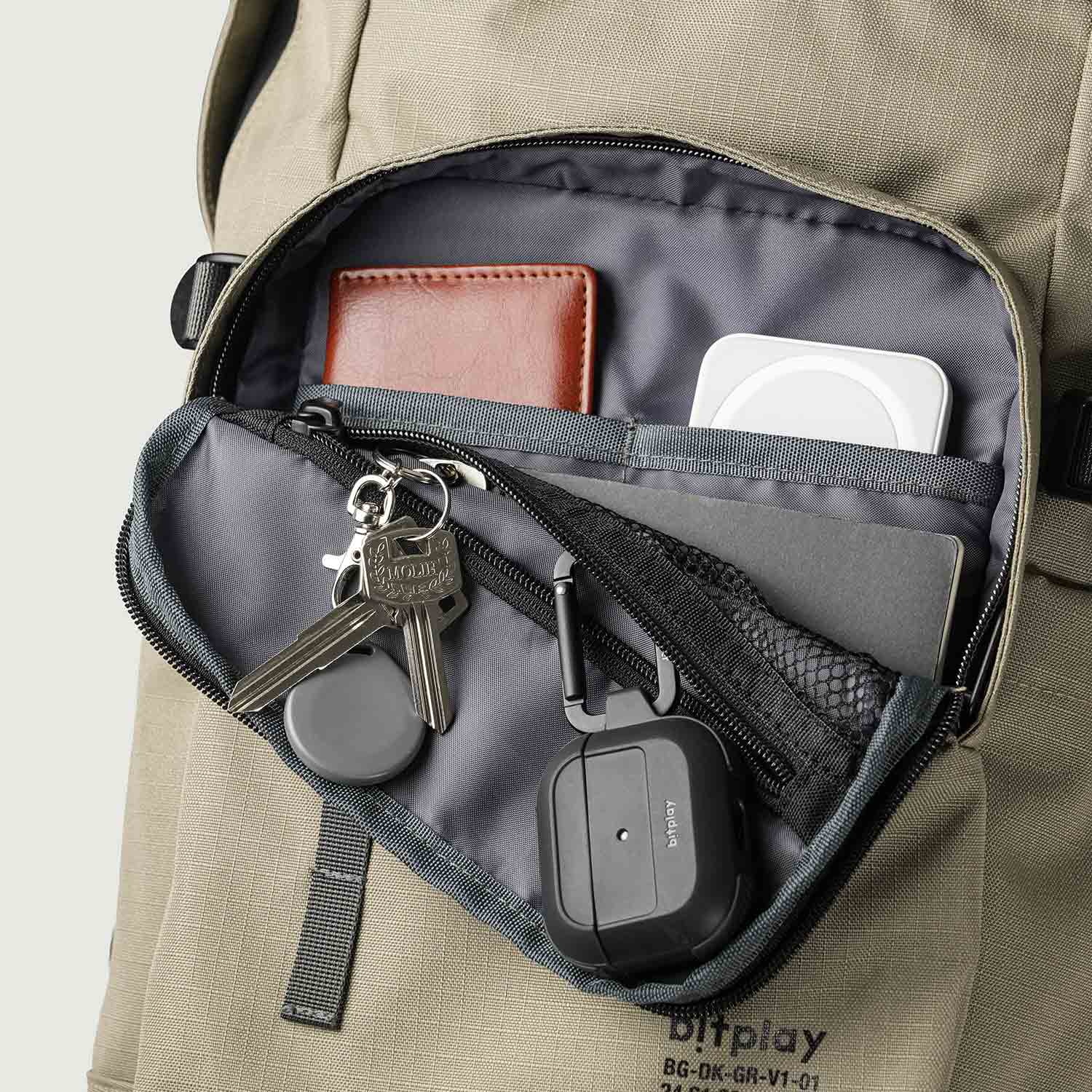 Front pocket with compartments for organizing various items.