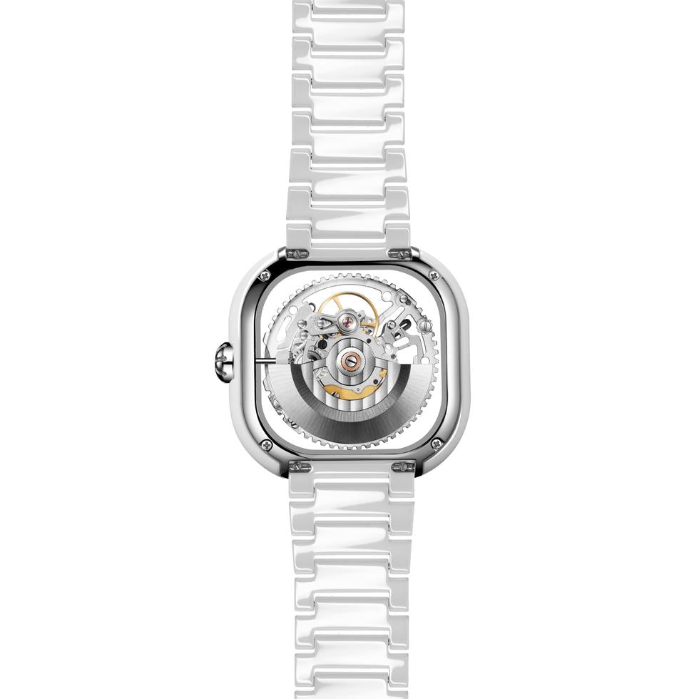 Featuring a sleek silhouette and a thin case with smooth, glossy ceramic jade, this contemporary timepiece is powered by Caliber CD-02, CIGA Design’s in-house movement adorned with 26 jewels. Embedded within the unique four-sided sapphire glass are more than 100 precision mechanical components that combine to present a sophisticated setup that oozes serenity, elegance, and glitz.
